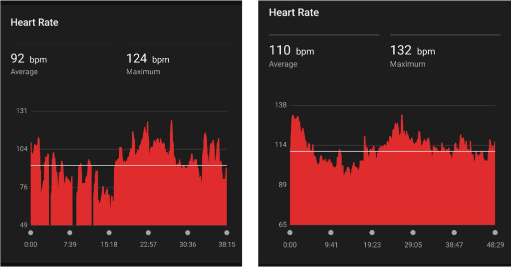 Garmin Dive App: My heart rate during my 45m dive (left) vs Japanese Wreck dive (right)