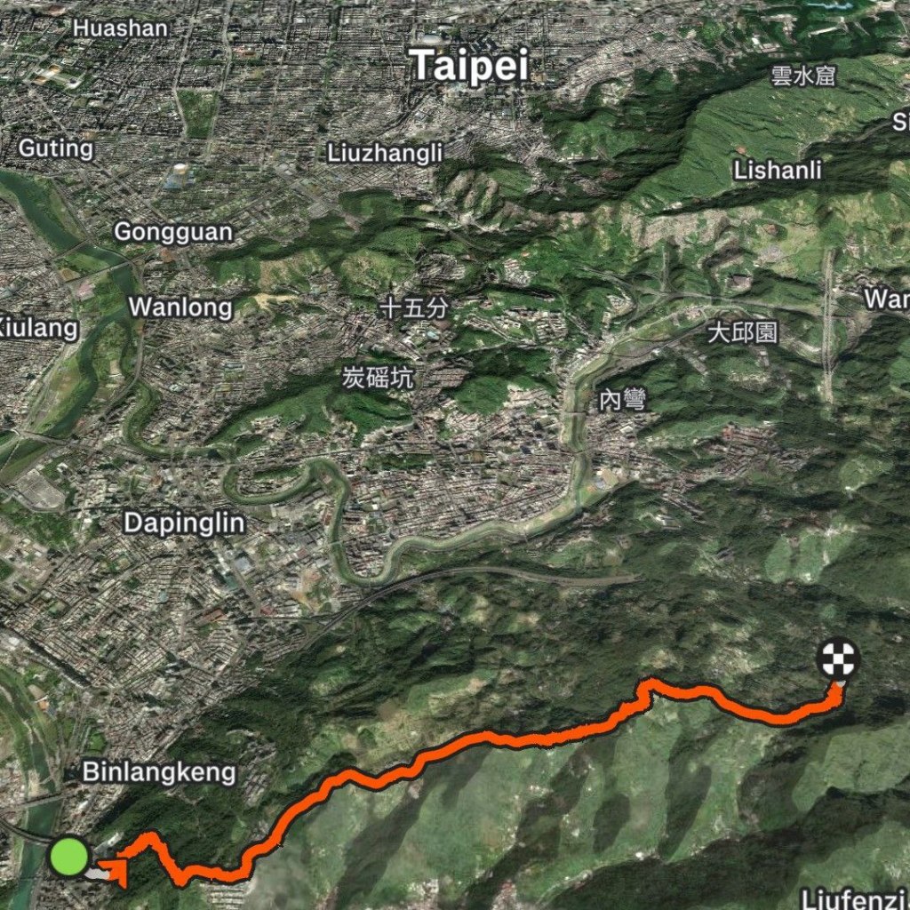 This trail starts across from Xindian Station (新店) and is supposed to end at Zhinan Temple, but due to rain in the forecast, I decided to end at Maokong Station (貓空站).