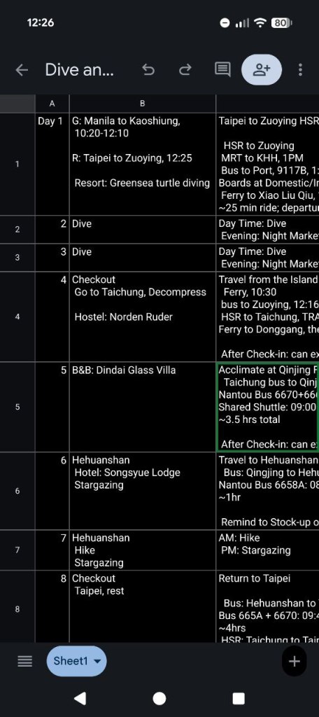For weeks, my feed has been flooded with people making these incredible, high-fidelity dashboards using AI. I’d look at them, then look at my own travel itinerary for my upcoming Taiwan dive and hike trip. I have a lovely Google Sheet with everything I need, but let’s be honest: it’s messy.